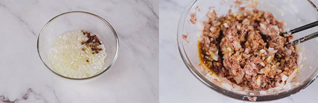 • Chop ginger and leek onion. Transfer to a bowl, add Sichuan peppercorn and pour in around 4 tablespoons of hot boiling water. Set aside and let it cool down to room temperature.