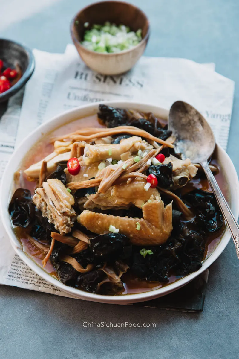 Easy, light and super healthy steamed chicken with wood ear mushroom and dried lily flower. This dish might be quite strange if you never tried. Sounds quite plain but it has a lovely light flavor and crunchy texture.