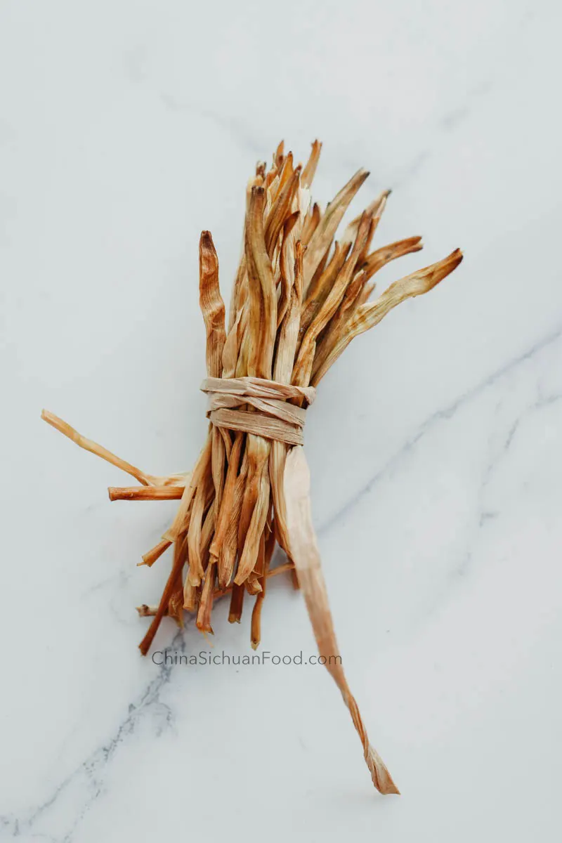 - Rehydrate Wood Ear Mushroom and dried lily flower | Soak wood ear mushroom and dried lily flower in cold water, soak for 30 minutes. If the lily flower has hard ends, remove them.